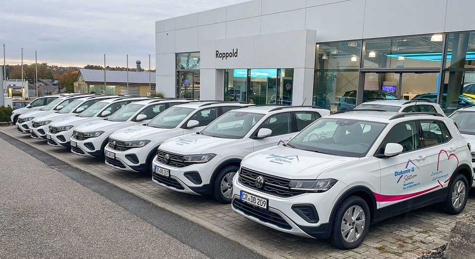 Die Diakoniestation Blaufelden setzt auf moderne Mobilität, um den Patienten bestmögliche Versorgung zu bieten. Dank der Anschaffung von zehn neuen T-Cross-Modellen stärken wir nachhaltig auch die Arbeitsfähigkeit unseres Teams und erhöhen die Zufriedenheit unserer Mitarbeiterinnen und Mitarbeiter. Vor allem der bequeme Ein- und Ausstieg hilft sehr im täglichen Gebrauch. Das ist WERTSCHÄTZUNG! Wir wünschen allen eine gute und unfallfreie Fahrt.