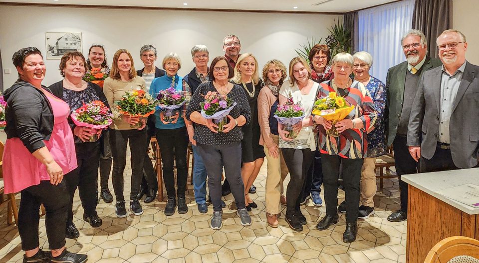 Auf dem Bild (von links): Sandy Müller, Marija Blekic, Nicole Pfeifer, Jennifer Kruska, Ute Strauß, Birgit Vogler, Heidi Reckwardt, Sylvia Faigl, Walter Leyh, Elena Spettmann, Christa Kokoska, Mareike, Ehrmann-Kohr, Waltraud Fetzer, Gisela Hertlein, Claudia Barthelmäs, Norbert Seibold sowie Erwin Landwehr.